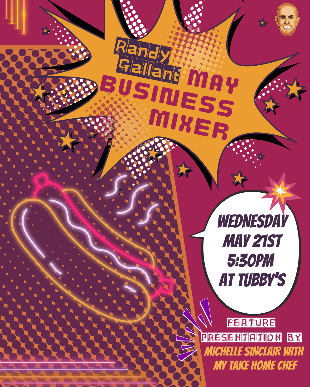 You are invited to the RANDY GALLANT MAY BUSINESS MIXER coming up on Wednesday May 21ST AT 5:30PM at Tubby’s. The Feature Presenter for May is Michelle Sinclair, Owner of My Take Home Chef. The topic of her presentation is “How to Free Up 40 Hours a Month and Impress Clients”. Please use the Eventbrite link below to purchase your ticket: