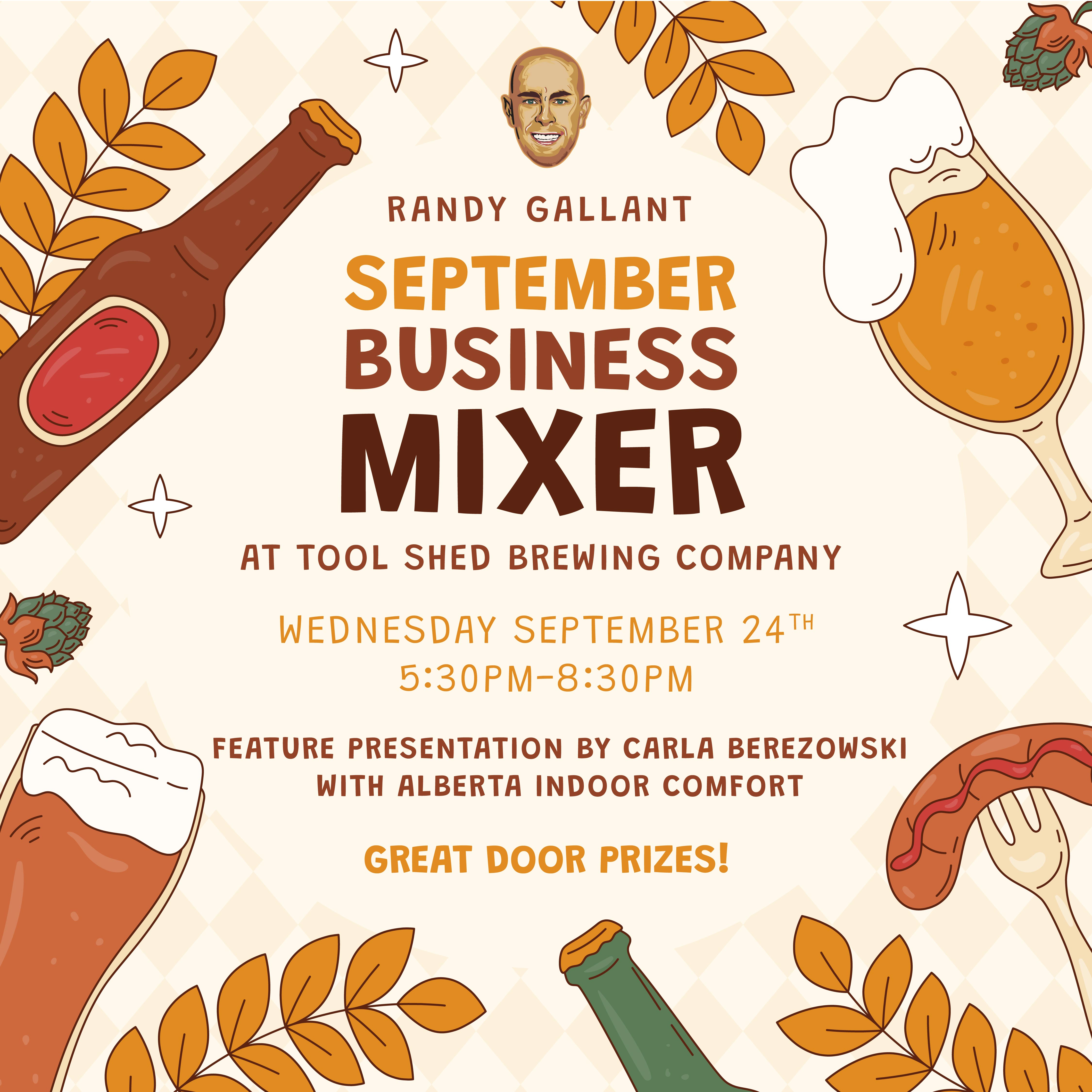 You are invited to the RANDY GALLANT SEPTEMBER BUSINESS MIXER coming up on Wednesday September 24TH AT 5:30PM at Tool Shed Brewing Company.The Feature Presenter for September is Carla Berezowski with Alberta Indoor Comfort. The topic of her presentation is “Healthy Air, Healthy Life-The Power of IEQ(Indoor Environment Quality”. You can purchase your ticket on Eventbrite.
