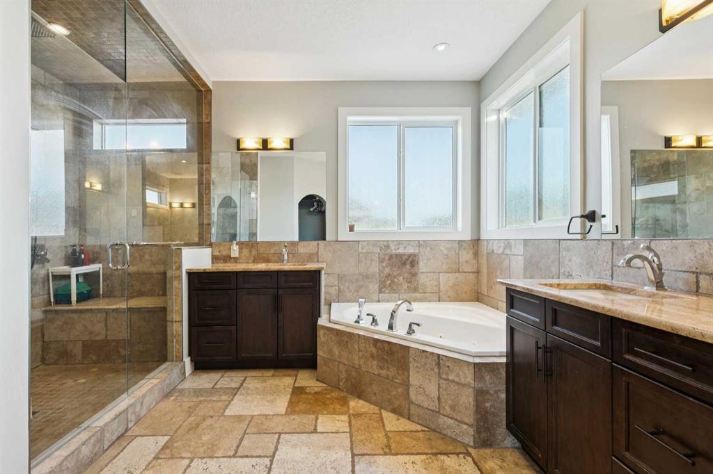 Upstairs, retreat to the large primary bedroom (14’ x 16’) featuring a luxurious 5-piece ensuite with double sinks, a walk-in shower with bench, jacuzzi tub, and a spacious walk-in closet. The secondary bedrooms are all generously sized, making this home ideal for families.
